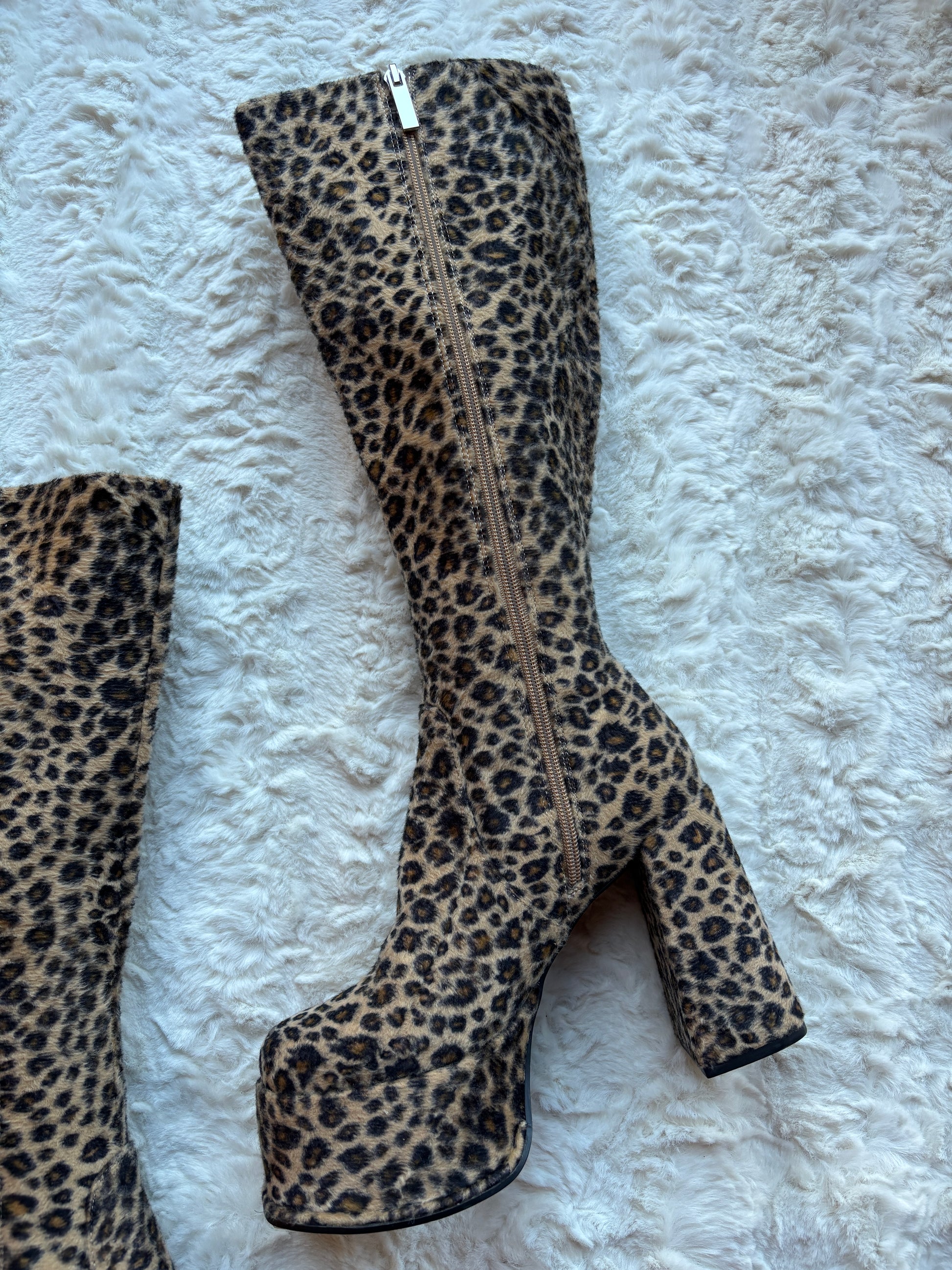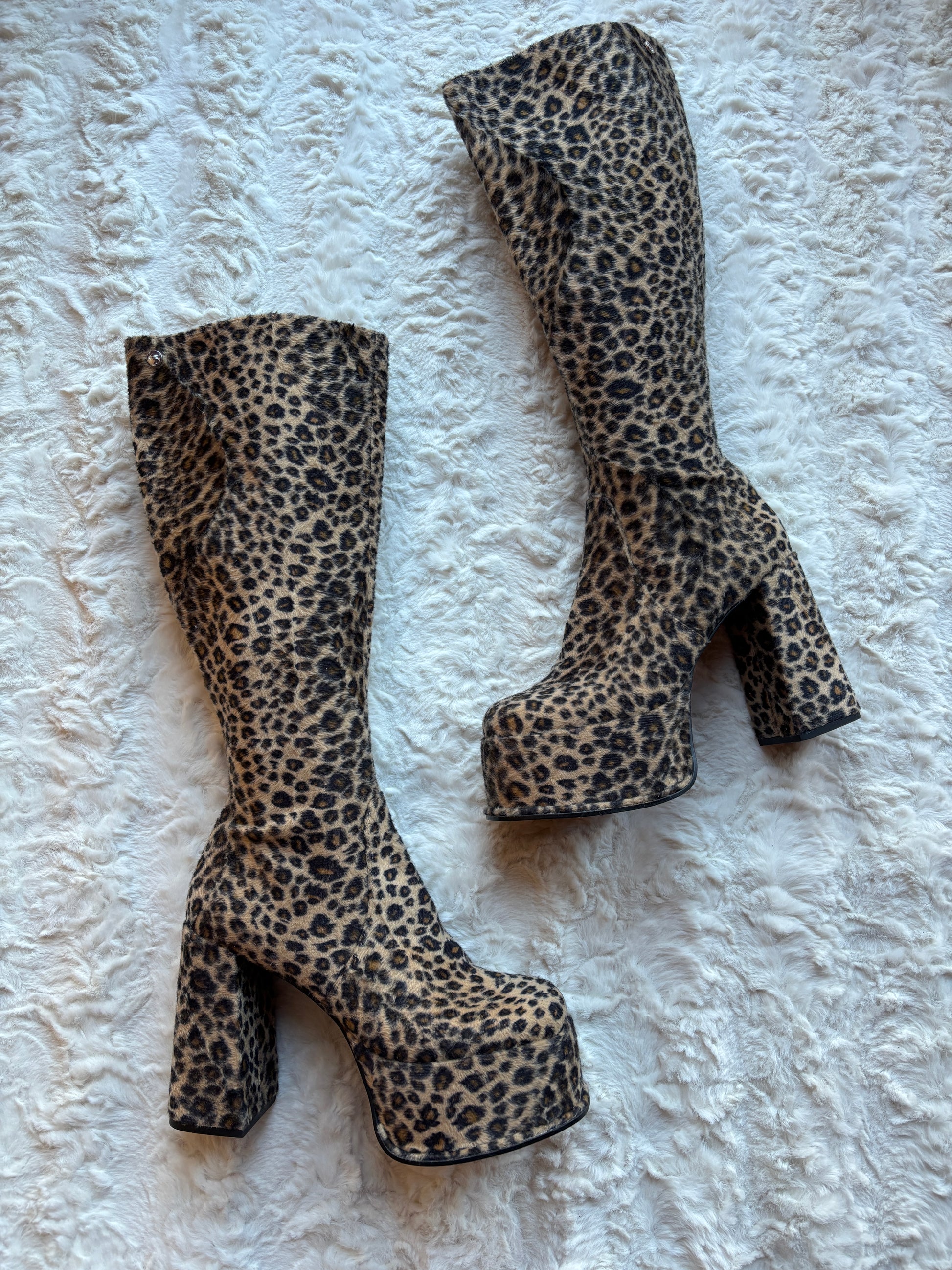 A true statement pair straight from the 90s, these vintage Shelly's London boots feature bold leopard print with a plush, textured finish that instantly commands attention. The all-over animal print gives them a fierce, fashion-forward edge, while the sculpted silhouette keeps the look sleek and wearable.
